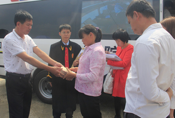 庭审中,梁法官详细听取了原、被告的陈述,从中了解到原、被告的分歧与矛盾。最后,在梁法官耐心细致的调解下,双方同意和好,达成协议:由三被告共同赔偿原告10万元(不包括已支付给原告的5.3万元),现场给付5万元,余款5万元于2017年12月30日前付清。